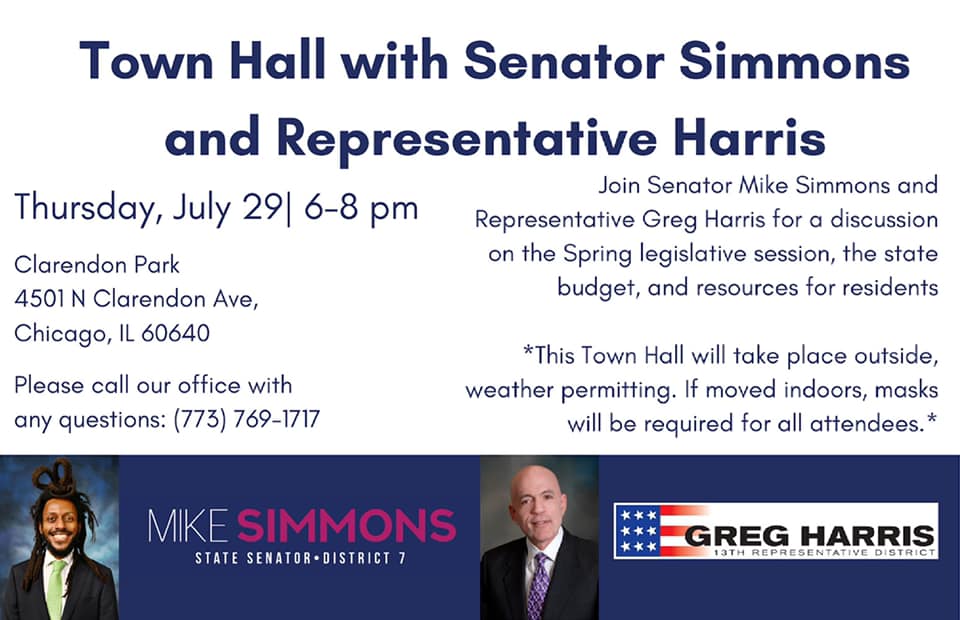 As always, please do not hesitate to contact my office at 773-769-1717 if we can help you with anything. Sincerely, Mike Simmons State Senator | 7th District |